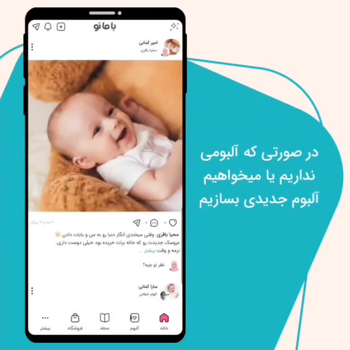 ویدیو رو تماشا کن تا بدونی چطور میشه یه آلبوم در بامانو ایجاد کرد 😊 میتونی در بامانو برای هر فرزندت یک آلبوم جداگونه بسازی و عکس ها و فیلم هاش رو در آلبومش پست کنی. میتونی دوست و آشنات رو هم به آلبومش دعوت کنی تا اون ها هم عکس های کودکت رو اونجا به اشتراک بذارن 😍 اینجوری همه عکس هات یک جا جمع میشن و دیگه عکسی گم نمیشه! تازه تا وقتی که خودت عکس هات رو حذف نکنی، پست هات در بامانو باقی میمونن. حتی اگه گوشیت رو گم کنی یا خراب بشه 💫 اگه سوالی در مورد ایجاد آلبوم داری، از قسمت دایرکت، کامنت ها و یا داخل اپ میتونی ازمون بپرسی 🌹 #بامانو #آلبوم #آلبوم_بامانو #ساخت_آلبوم #عکس #ویدیو #عکس_کودک #آلبوم_کودک #آلبوم_عکس