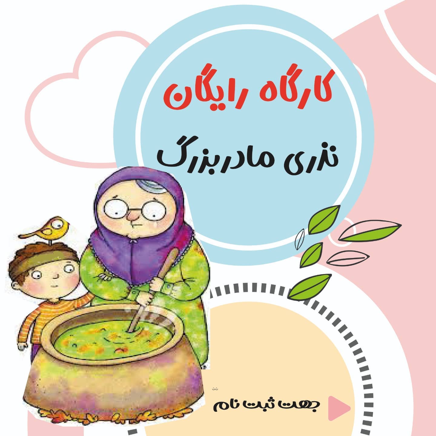 کارگاه نذری مادربزرگ🫕 امروز ساعت ۵ یک کارگاه رایگان داریم به مناسبت شهادت امام حسن مجتبی(ع) هر کسی که تمایل داره نهایتا تا ساعت ۱۶ دایرکت پیام بدهد.