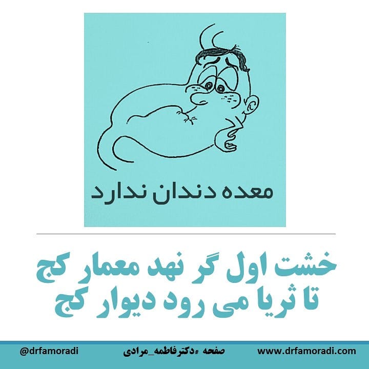 @drfamoradi 🔶خشت اول گر نهد معمار کج/ تا ثریا می رود دیوار کج . . می خواهم یک سوال از کسانی که غذا را خوب نمی جوند بپرسم: خداوند دندان را در چه قسمتی از بدنتان آفریده؟ آیا در قسمت دیگری از سیستم گوارش شما، دندان وجود دارد؟ مثلا در مری، معده، روده و ... یا حتی مقعد؟!! (فقط تصور کنید مقعدتان دندان داشته باشد)!!😬😬 . توجه به عمل «هضم»، یکی از مهم ترین اصول غذا خوردن در طب ایرانی است. از نظر این مکتب طبی، چهار نوع هضم وجود دارد: گوارشی، کبدی، عروقی و عضوی (سلولی). شروع هضم «گوارشی» از دهان و «جویدن» شروع می شود. پس فردی که غذا را به خوبی نمی جود، #خشت_اول هضم غذا را کج می گذارد... ادامه مبحث را از کتاب اصول خوردن و آشامیدن برایتان می آورم: . . «همان گونه که قبل از پخت غذا، باید موارد لازم برای طبخ را آماده نمود، برای هضم غذا در بدن هم می بایست موارد لازم جهت گوارش را تهیه کرد. از ابتدایی ترین این موارد، خوب #جویدن_غذا است تا فرصت برای #هضم_دهانی وجود داشته باشد. معده انسان، بر خلاف معده برخی حیوانات، قابلیت گوارش مواد آسیاب نشده را ندارد؛ و موادی که در دهان نرم نشده باشد پس از یک هضم کند و پرزحمت، به صورت هضم نشده وارد روده ها می شود و انواع مشکلات گوارشی و سوء هضم مواد مختلف را موجب می شود. به عبارتی در هیچ کجای دستگاه گوارش به جز دهان، دندان وجود ندارد! بنابراین همیشه باید ملاحظه معده و لوله گوارش را کرد، چرا که عمل #هضم، منشاء ادامه حیات انسان است. در این زمینه پژوهش های مختلفی انجام شده است. مثلا محققان در ژاپن به نتیجه رسیدند که آهسته غذا خوردن به لاغر شدن کمک میکند. در این مطالعه حدود ۶۰ هزار نفر طی سالهای ۲۰۰۸ تا ۲۰۱۳ مورد بررسی قرار گرفتهاند و سرعت غذا خوردن آنها به سه گروه: تند، معمولی و کند تقسیمبندی شد. احتمال بروز چاقی در افرادی که با سرعت عادی غذا میخورند، در مقایسه با افرادی که تند غذا میخورند ۲۹ درصد کمتر است. این احتمال در افرادی که از سرعت عادی کندتر غذا میخورند، ۴۲ درصد کاهش مییابد.» . . 📚 از کتاب: #اصول_خوردن_و_آشامیدن (جلد سوم از مجموعه #کتابچه_های_سبک_زندگی_سالم) 🖋 نوشته: دکتر سمیه فتعلی، #دکترفاطمه_مرادی، دکتر فاطمه علیزاده . . . @drfamoradi . . . #گوارش_سالم_مرادی #سبک_زندگی_طب_سنتی #طب_سنتی #دکتر_فاطمه_مرادی #دکترطب_سنتی #متخصص_طب_ایرانی #متخصص_طب_سنتی