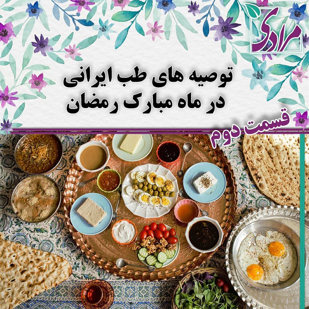 . __________________ 🥗 همراه با غذای خود، در وعده سحر یا افطار، چیزی میل نکنید. ولی اگر نمی توانید، در حد هفت عدد زیتون کم نمک، یا یک پیش دستی سبزی خوردن، مناسب تر است. 🍹از مصرف نوشیدنی های یخ پرهیز کنید. ضرر این عمل، در وعده افطار، که معده مدت زیادی خالی بوده، بسیار مضرتر است. 🌙در این ایام که روزها طولانی هستند، افطار و شام خود را در یک زمان میل کنید. یعنی هنگام اذان مغرب، برای افطار روزه خود، از انواع نوشیدنی های گرم و شیرین استفاده کنید، تا معده آمادگی ورود غذای سنگین تر را پیدا کند. سپس یک ربع بعد از این نوشیدنی، غذای خود را میل کنید (این طور نمازتان را هم اول وقت می خوانید 😉)! 🍵 مصرف آش رشته، شله قلمکار یا هلیم (مخصوصا اگر آرد زیادی داشته باشند)، مناسب غذای افطار نیستند. بهتر است در وعده افطار از غذاهای سبک و آبکی استفاده کنید مانند فرنی، حریره بادام، شیربرنج، آش یا سوپ رقیق سبزیجات. اما اگر عادت به خورن غذای کامل تری دارید، موردی ندارد؛ ولی پرخوری نکنید. 🥞 خوردنی های شبیه صبحانه نیز در بعضی افراد مناسب هستند، مانند تخم مرغ عسلی، نان و پنیر لیقون و گردو، کره و مربا، کره و عسل، کره و شیره انگور و ... 🍲 بهترین غذاهای مناسب در وعده سحر، خورشت ها هستند. در خورشت هایتان از سبزیجاتی مانند کدو، اسفناج، هویج، کرفس، و آلو و چاشنی های ملس استفاده کنید. خورشت هایتان را آبکی تر آماده کنید و همچنین ادویه و رب زیادی نزنید. 🍹یکی از بهترین نوشیدنی ها در ماه رمضان، شربت نسبتا رقیقی از سکنجبین است که ضرر کمتری نسبت به نوشیدن سایر مایعات نزدیک وعده های غذایی دارد. برای تهیه سکنجبین شیرین فیلم کوتاه همین پست را مشاهده کنید. ☕️ مصرف چای و نوشیدنی های گرم نیز بلافاصله بعد از خوردن غذا، از نظر طب ایرانی مناسب نیست. نوشیدن یک فنجان دمنوش سیب، به، یا چای ایرانی که به خوبی دم کشیده باشد، حدود نیم تا یک ساعت بعد از غذا، هم ضرر کمتری دارد، و هم دارای یکسری خواص مفید برای مشکلات گوارشی است. بسته به مشکلات معده خود می توانید به چای ایرانی، هل، گلبرگ گل محمدی یا زعفران اضافه کنید. #تدابیر_روزه_مرادی #تدابیر_ماه_رمضان #سحری_مناسب #افطار_سالم #دکتر_فاطمه_مرادی #متخصص_طب_ایرانی #سکنجبین_مرادی