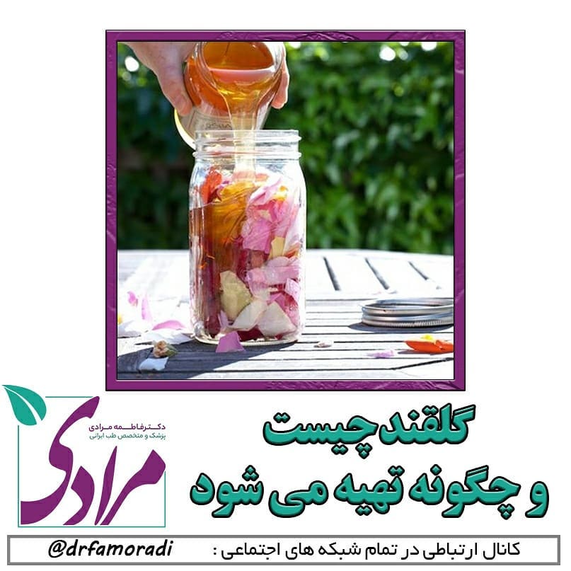 . ___________________________ 🌸 گلقند، ملین خوبی برای افراد سرد و تر (بلغمی) می باشد و رطوبات اضافی بدن را از طریق روده ها دفع می کند. آن را می توانید از داروخانه ها خریداری نمایید ولی گلقندی که خودتان در منزل تهیه کنید عطر، طعم و اثرات بهتری خواهد داشت. 🌷 برای تهیه گلقند عسلی یا شکری، در یک ظرف شیشه ای، مقداری گلبرگ تازه گلسرخ کاشان بریزید و لابلای آن عسل، شکر، پودر قند یا نبات (دو برابر میزان گلسرخ) اضافه نمایید. ترکیب حاصل را داخل شیشه دربسته، به مدت چهل روز در زیر نور خورشید قرار دهید و هر چند روز یکبار نیز آن را با هم مخلوط کنید. گلقند عسلی، گرم تر از نوع شکری آن است و برای افراد با گوارش سرد مناسب تر می باشد. معمولا توصیه می شود یک قاشق مرباخوری گلقند قبل از ناهار یا شام میل شود. 👈🏻 پ.ن : گلقند رو بیشتر از دو هفته مداوم مصرف نکنید. و در صورتی که بیماری دیگری دارید، یا اوایل بارداری هستید، یا جواب درمانی خوبی نگرفتید، نیاز به ویزیت دارید. 📚از کتاب : #پاکسازی_بدن 🖋 نویسنده : #دکتر_فاطمه_مرادی #یبوست_مرادی #طب_سنتی #طب_ایرانی #دکتر_مرادی #کتاب_پاکسازی_بدن #گلقند #طرز_تهیه_گلقند #گلقند_عسلی #گلقند_آفتابی #گلقند_چیست #ملین #یبوست #یبوست_بارداری #درمان_یبوست #کتابها_چه_میگویند #اوایل_بارداری #بلغم #سرد_و_تر #بلغمی #گلقند_مرادی #بارداری_سالم_مراری #کتب_مرادی