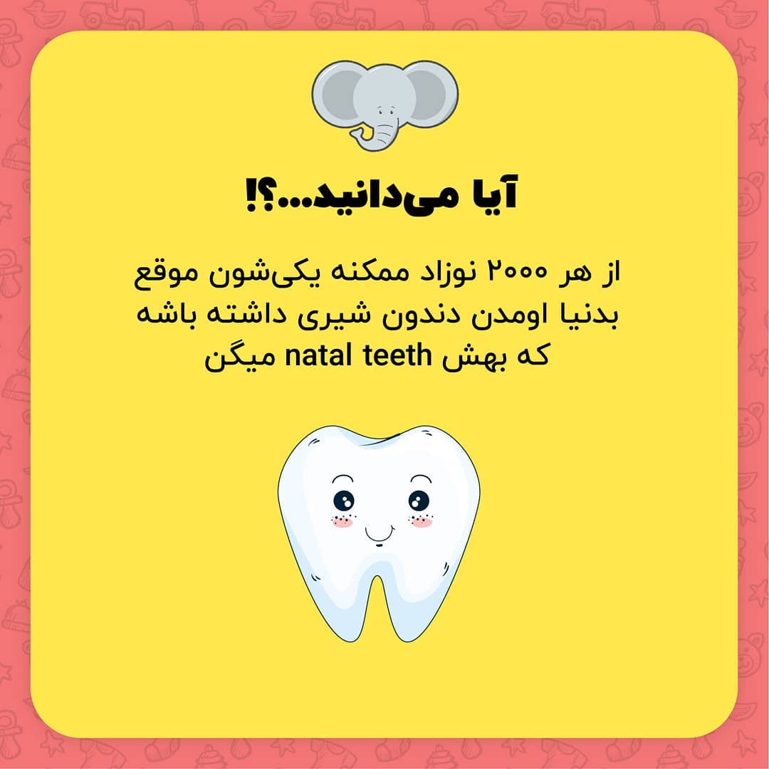 . مامانای باردار رو منشن کنین 😍 . این یه پدیده خیلی خیلی نادره و برای هر نوزاد احتمالا ٠.٠۵ درصده یعنی از هر ٢٠٠٠ نوزاد یدونهشون ممکنه موقع بدنیا اومدن دوتا دندون شیری کوچولو داشته باشن که زرد یا قهوهای روشن هستن. به این دندونا natal teeth یا همون دندون طبیعی گفته میشه. با اینکه احتمالا خیلی ناچیزه ولی پدیده جالبیه 😍. . . . . . . . . #جالب #دانستنی #علمی #عجیب #باحال #دانستنی #دانستنیها #نوزادپسر #نوزاددختر #بچه_ناز #نوزاد #نینی #کودکی #نینی_ناز #بارداری #زایمان #دندان #دندان_شیری #دندون #دندان_نوزاد