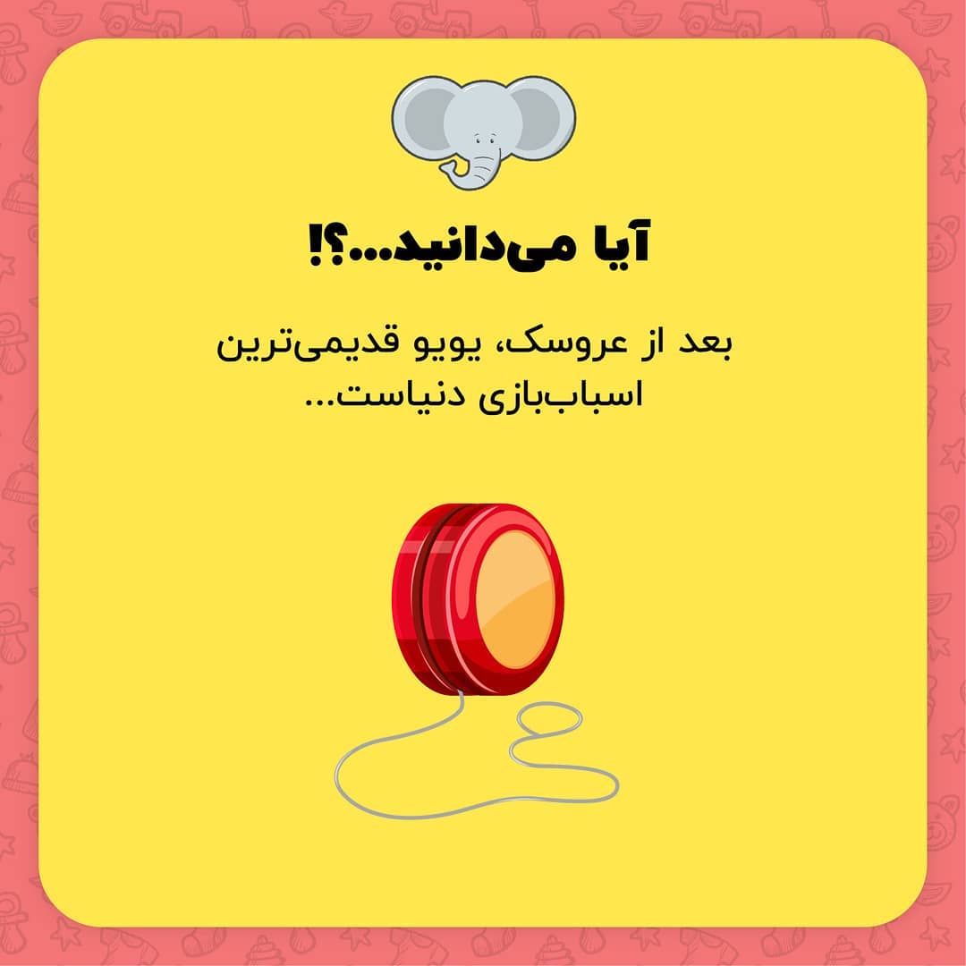 . اولین اسباب بازی کودک شما چی بوده؟ . اکتشافات دانشمندان نشون میده که اولین و قدیمی ترین اسباب بازی های جهان عروسک ها هستن. یعضی از دانشمندان هم معتقدن که بعد از عروسک ها، یویو قدیمی ترین اسباب بازی دنیاست و توی چین باستان اختراع شده. البته این رو باید بگم که این موضوع در مورد یویو مدارک قطعی و علمی نداره و بر اساس شواهده. ولی باز هم جالبه نه؟ . . . . . . . . #باستان #قدیمی #اولین #جالبترین #مفید #دانستنیها #نوزادی #شیرخوار #بارداری #نوزادپسر #نوزاددختر #بچه #جنین #عجیب #جالب #علمی #دانستنی #باحال #آیامیدانید #عجیب_غریب #اطلاعات_عمومی