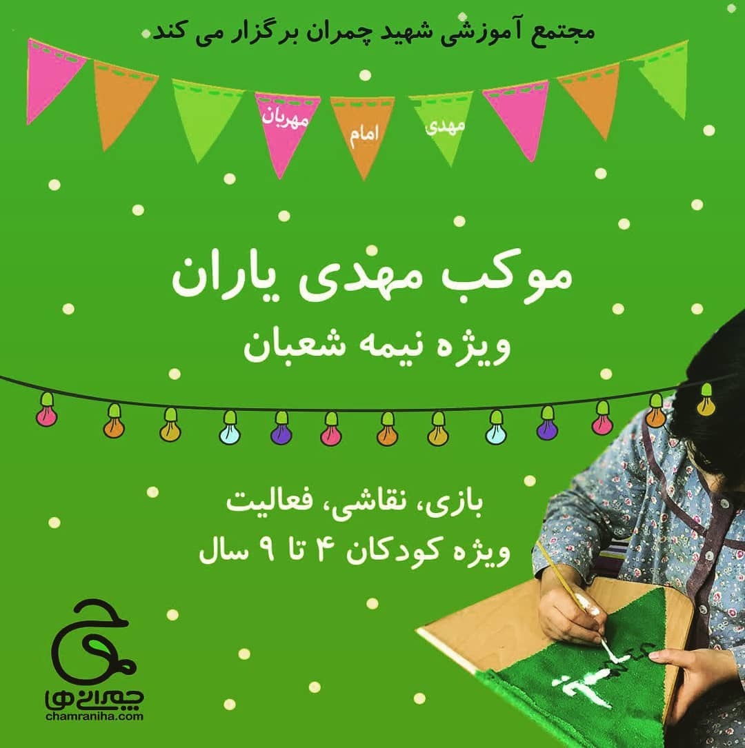 🎉 🎊 موکب مهدی یاران 🌸ویژه نیمه شعبان🌸 🗓 چهارشنبه ۲۸ فروردین ⏰ ساعت ۱۴:۳۰ الی ۱۶:۳۰ 📍دختران: میدان خراسان. ابتدای خ خراسان. پ ۱۱. ادبستان دخترانه حمزه دوران. 📍پسران: میدان خراسان، جنب مجتمع تجاری خراسان. پ ۳۱. ادبستان پسرانه حمزه دوران. #نیمه_شعبان #چمرانی_ها #موکب #مجتمع_آموزشی_شهید_چمران