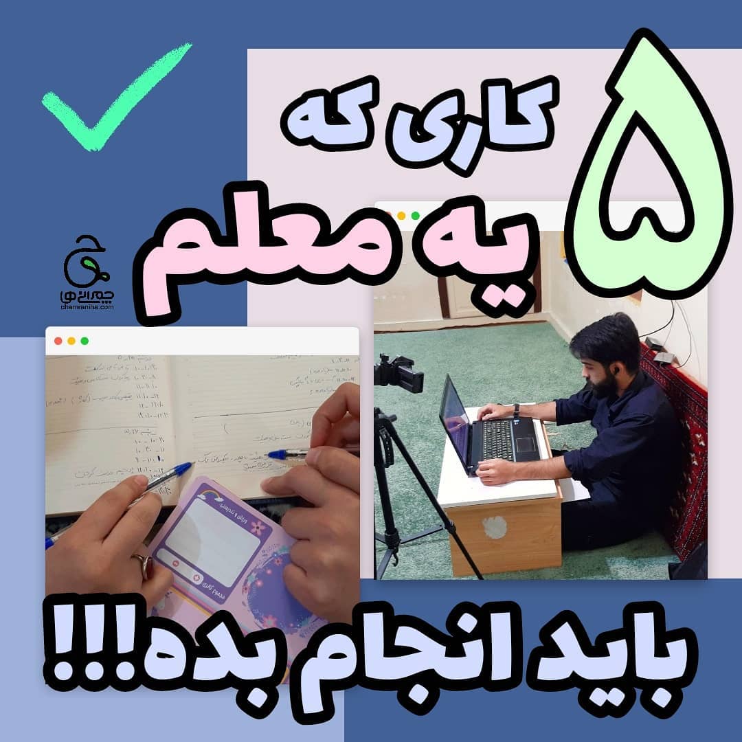 . ۵ تا کاری که یه معلم باید انجام بده😎⬆️ . معلم ها! دیگه وقتشه! حالا که کمتر از یک ماه به سال تحصیلی جدید مونده، از این ۵ تا کار غافل نشید🤩 . ورق بزنید و بخونید👆🏻 . ✅راستی این پست رو سیو کنید و برای معلم ها بفرستید چونکه قراره تو پست های بعد بیشتر درباره این ۵ مورد باهم حرف بزنیم😇🤗 . #معلم_خلاق #طرح_درس#معلم #سال_تحصیلی_جدید #آموزش_مجازی #درس #آموزش #دانش_آموز #والدین #معلم_فعال #معلم_خوب #معلم_حرفه_ای