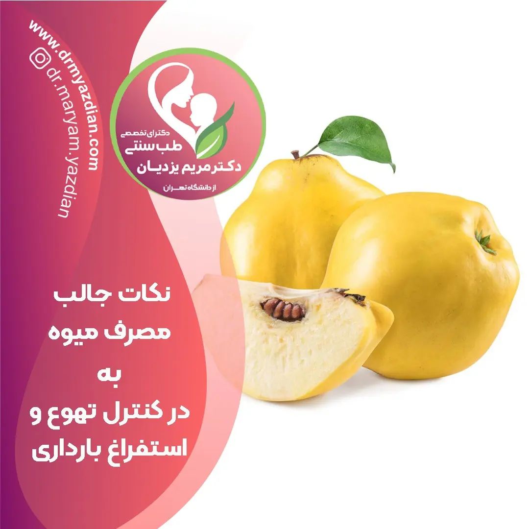 ♦️میوه به در بادراری♦️ ✨👌میوه به جزو میوه های توصیه شده در دوران بارداری هست. ✨👌از دیدگاه طب ایرانی، مقوی معده و قلب محسوب میشه. ✨☝️ دقت کنید که از مصرف افراطی این میوه باید اجتناب بشه و می تونه عوارضی داشته باشه . ❣️نکات علمی طب ایرانی در ویدیوی جامع " بادراری سالم در طب سنتی" ✨ ✨✨ برای تهیه ویدئو ها به آدرس سایت 👇👇👇 www.drmyazdian.com مراجعه کنید و یا در دایرکت پیام بدین.🌸🌸 __________________________________________ ⏪برای تهیه ویدیوهای آموزشی جامع و کاربردی طب سنتی ♦ سلامت و تغذیه کودکان ♦ پیش از باداری سالم ♦ بارداری سالم ♦ پس از زایمان و شیردهی ♦عفونت زنان ♦یایسگی و یایسگی زودرس ♦سلامت رحم و تخمدان ♦سلامت معده و کبد ♦مزاج شناسی ♦و سایر ویدیوهای سلامت کودکان و بانوان به سایت زیر مراجعه کنید 👇👇👇👇 www.drmyazdian.com 👈یا در دایرکت پیام بدین 👈لینک سایت در بیو و های لایت موجود است. ⏪ویدیوها ویژه عموم بانوان و همکاران گروه علوم پزشکی می باشند. _________________________________________ 💠دکتر مریم یزدیان 💠 فارغ التحصیل پزشکی عمومی از دانشگاه تهران 💠دکترای تخصصی طب سنتی از دانشگاه علوم پزشکی تهران 💠رتبه دوم آزمون ورودی طب سنتی کشوری 💠 مدرس دوره های طب سنتی مقدماتی تا پیشرفته برای گروههای مدارس،جهاد دانشگاهی،پزشکان و ماماها به امید 🔆 مادران سالم 🔆 کودکان سالم 🔆جامعه سالم @dr.maryam.yazdian @dr.maryam.yazdian @dr.maryam.yazdian __________________________________________ #طب_سنتی_ایران #طب_سنتی_ایرانی #طب_ایرانی #متخصص_طب_ایرانی #متخصص_طب_سنتی #بارداری #بارداری_سالم #قدرت_باروری #نازایی #ذخیره_تخمدان #به #رب_به #مربای_به #دمنوش_به #دمنوش_به_لیمو #طبسنتی #تخمک #ناباروری #دکتر #دکتر_یزدیان #دکتر_مریم_یزدیان