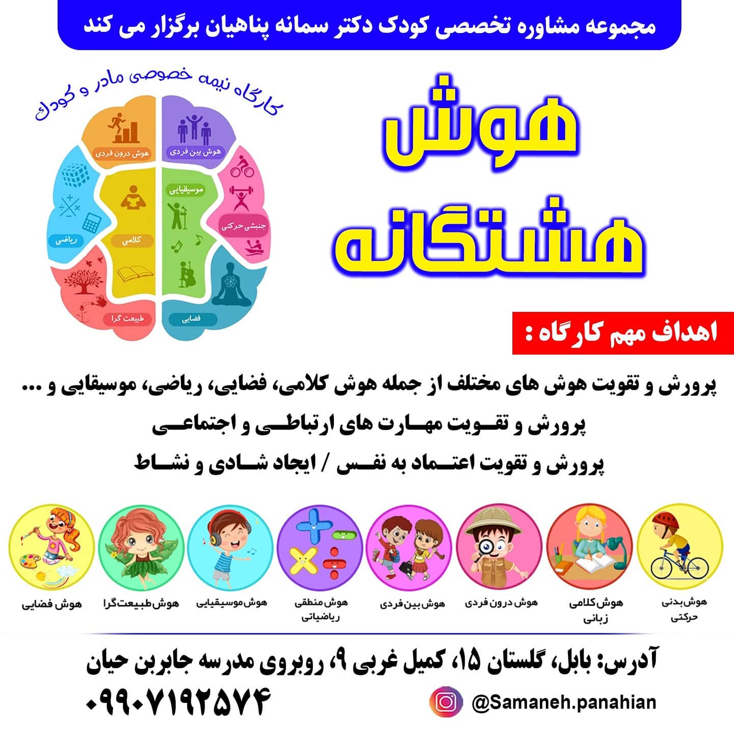 ✅ کارگاه بازیگوش باهوش" (جدائی اصولی و تدریجی کودک از مادر) 📝 در این کارگاه، ضمن آموزش های مشابه دیگر دوره های آموزشی، طی فرآیندی تدریجی حضور مادر کم رنگ می شود. این روند تا آنجائی ادامه خواهد داشت که کودک بتواند بصورت مستقل و بدون حضور مادر در فعالیتهای جمعی مشارکت داشته باشد. 😊 در این کارگاه چهار خصوصیت مهم در کودک تقویت می شود:👇 1️⃣ استقلال فردی کودک؛ 2️⃣ مشارکت با دیگران؛ 3️⃣ دوستیابی و مهارتهای اجتماعی و ارتباطی؛ 4️⃣ قانونمندی و مسئولیت پذیری؛ 🔻 هفته ای ۲بار صبح، ۲ ساعت شنبه ها و چهار شنبه ها، ساعت ۱۰:۳۰ الی ۱۲:۳۰ شروع از ۱۲ مرداد 🔺محل برگزاری: بابل، خیابان بسطامی، نیایش ۸، حافظ ۳، پلاک ۲۰، دفتر مشاوره تخصصی کودک خانم پناهیان ☎️ برای ثبت نام با شماره های زیر تماس حاصل فرمائید: 09907192574 32194273 @samaneh.panahian