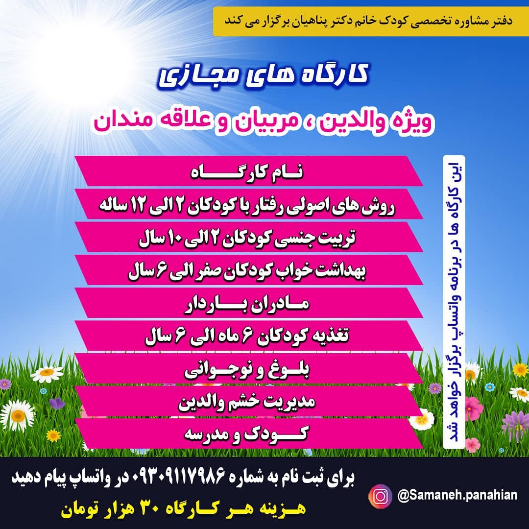 🔔قابل توجه کسانیکه تمایل دارند در کارگاه های مجازی فوق شرکت کنند👇 💓کافیست نام کارگاه یا کارگاه های مورد نظر بفرمایید تا مطالب مربوطه برای شما ارسال بشه 💓ارسال مطالب هم در برنامه واتساپ و هم برنامه تلگرام امکانپذیره ( هر کدوم که خودتون اعلام کنید ) 💓اطلاعات هر کارگاه، حدودا به اندازه ۳ جلسه کارگاه حضوری هستش که همه اطلاعات در یک روز برای شما ارسال میشه 💓تا ۲ روز بعد از ارسال مطالب، به سوالات شما که در رابطه با موضوع کارگاهی که شرکت کردید باشه پاسخ داده میشه 💓مطالب ارسال شده برای همیشه باقی می مونه و هیچ وقت حذف نمیشه 💓بعد از اینکه مطالب ارسال شد ، لطفا کل مطالب را جهت اطمینان برای خودتون در یک برنامه دیگه ذخیره کنید تا چنانچه به هر دلیلی اون اطلاعات از دست دادید در برنامه دیگه داشته باشید تا درخواست مجدد ارسال اطلاعات از طرف ما نداشته باشید چون این امر برای ما امکانپذیر نیست 💓هزینه هر کارگاه مجازی: فقط ۳۰ هزار تومان 💓برای ثبت نام میتوانید در دایرکت یا به شماره 09309117986 در واتساپ و یا به شماره 09907192574 در تلگرام پیام دهید @samaneh.panahian @samaneh.panahian #کارگاه_مجازی #دکتر_سمانه_پناهیان #روانشناس_کودک #اولین_برگزارکننده_کارگاههای_تخصصی_مادروکودک_در_استان_مازندران #دارنده_مجوز_رسمی_از_سازمان_نظام_روانشناسی_و_مشاوره_کشور