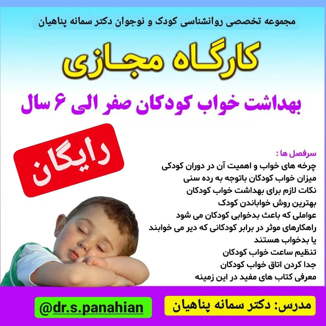 به خاطر ارادت زیادم به❤ آقا امام رضا علیه السلام ❤ امروز تصمیم گرفتم در جهت انتقال آگاهی و اطلاعات بیشتر به شما عزیزان در خدمتتون باشم🙏 ☘این کارگاه، در برنامه واتساپ برگزار خواهد شد☘ ثبت نام 👈 دایرکت @dr.s.panahian #بهداشت_خواب #بهداشت_خواب_کودک #بهداشت_خواب_کودکان #خواب_کودک #جداکردن_اتاق_خواب_کودکان #بدخوابی_کودکان