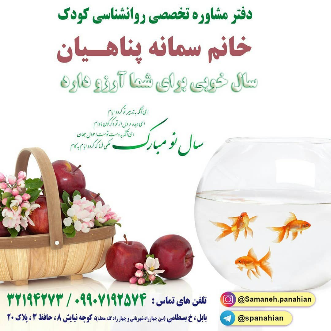 دکتر سمانه پناهیان/ روانشناس کودک و نوجوان اولین برگزار کننده کارگاه های مادر و کودک در استان مازندران آغاز فعالیت از سال 88 مازندران، بابل، کمربندی شرقی، گلستان 15، مجموعه تخصصی روانشناسی کودک و نوجوان