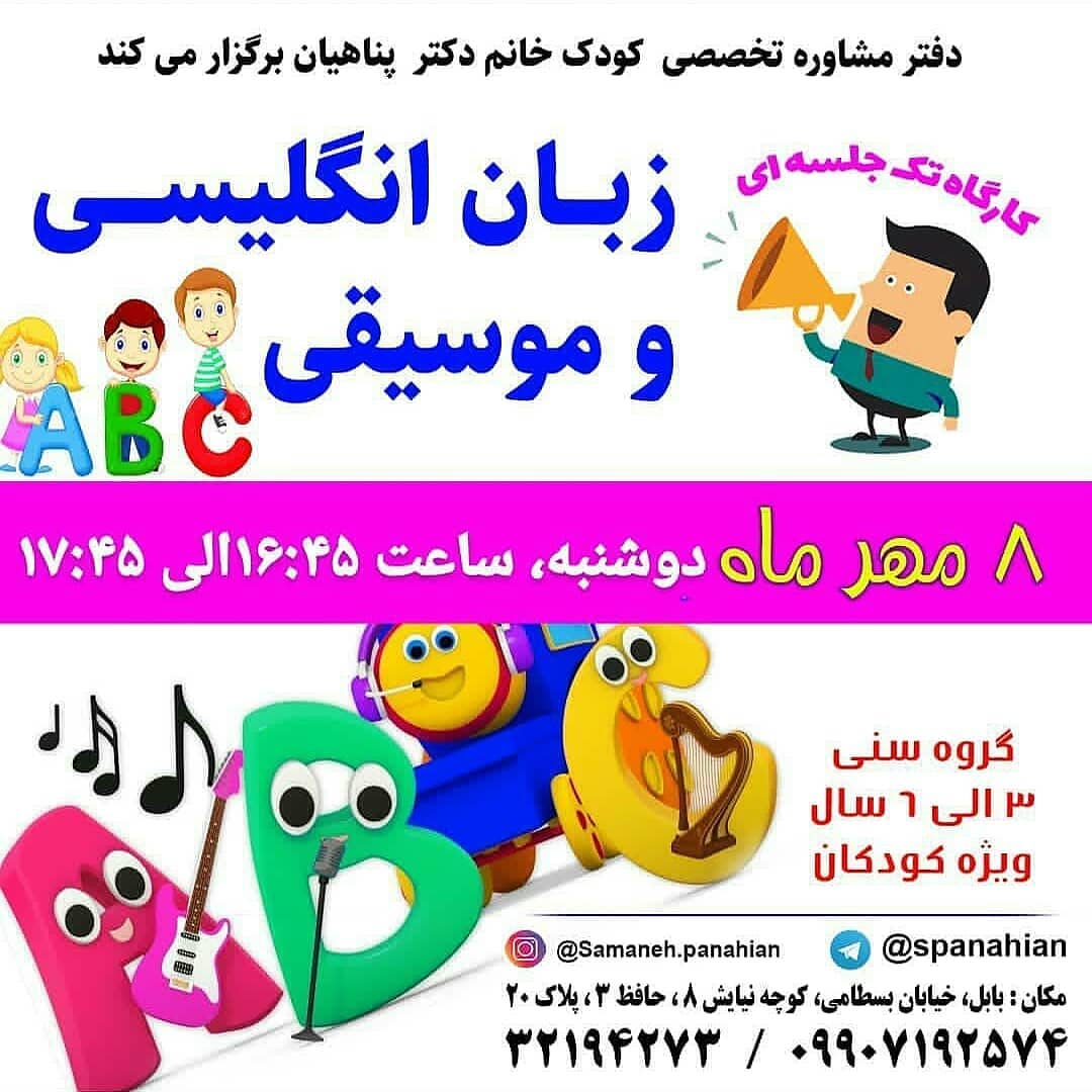 دکتر سمانه پناهیان/ روانشناس کودک و نوجوان اولین برگزار کننده کارگاه های مادر و کودک در استان مازندران آغاز فعالیت از سال 88 مازندران، بابل، کمربندی شرقی، گلستان 15، مجموعه تخصصی روانشناسی کودک و نوجوان