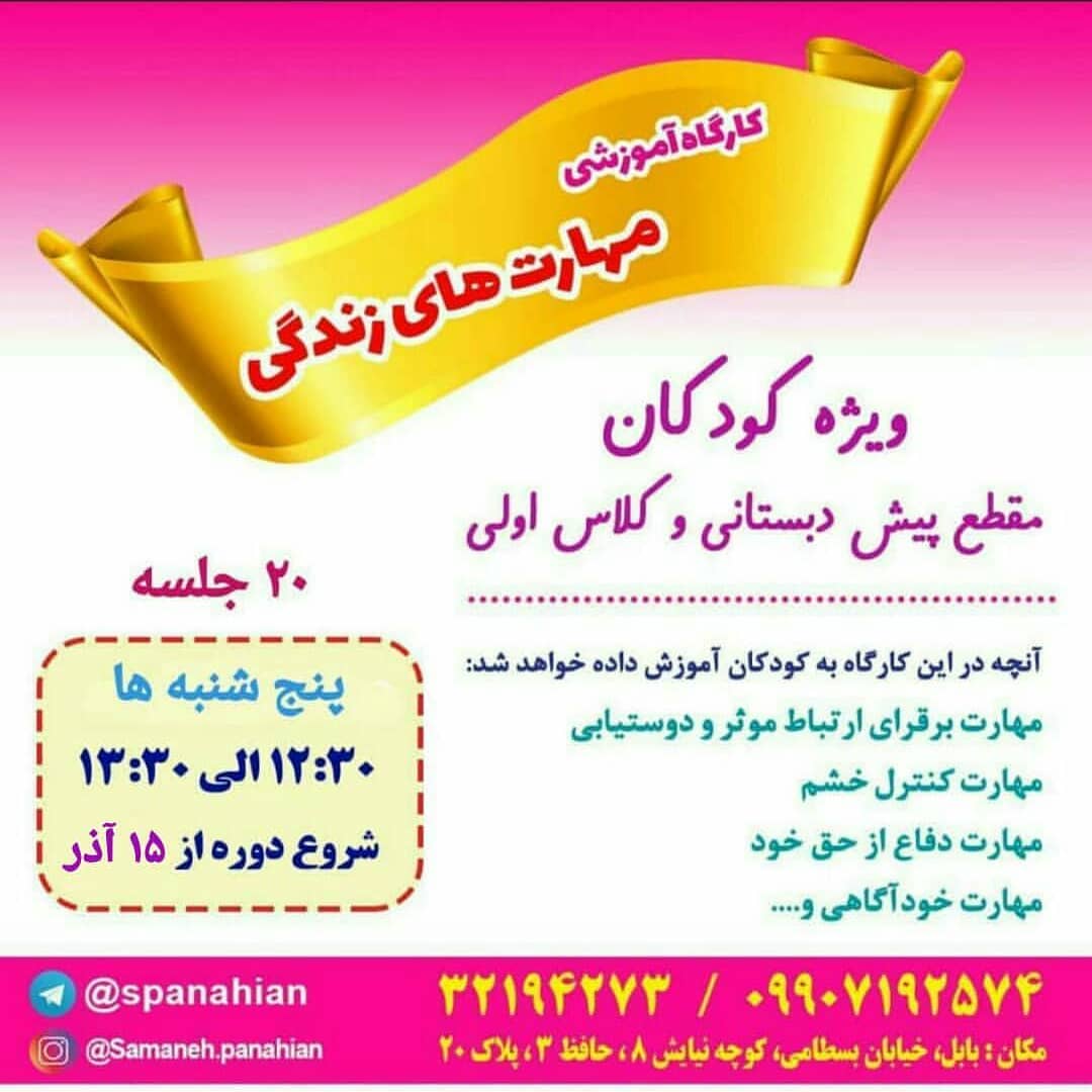 یک نفر ظرفیت دارد ✨کارگاه مهارت های زندگی 💓ویژه کودکان پیش دبستانی و کلاس اولی ❇️۲۰جلسه، هفته ای یکبار، یک ساعت 🔔پنج شنبه ها، ساعت۱۲:۳۰الی۱۳:۳۰ ✨شروع دوره از ۱۵ آذر ☎️09907192574 32194273 مازندران،بابل، خیابان بسطامی، کوچه نیایش ۸، حافظ ۳، پلاک ۲۰ @samaneh.panahian @samaneh.panahian #مهارتهای_زندگی_کودکان #پیش_دبستانی #اول_دبستان #سمانه_پناهیان #روانشناس_کودک #آموزش #دفتر_مشاوره_تخصصی_روانشناسی_کودک_خانم_پناهیان #مازندران_بابل