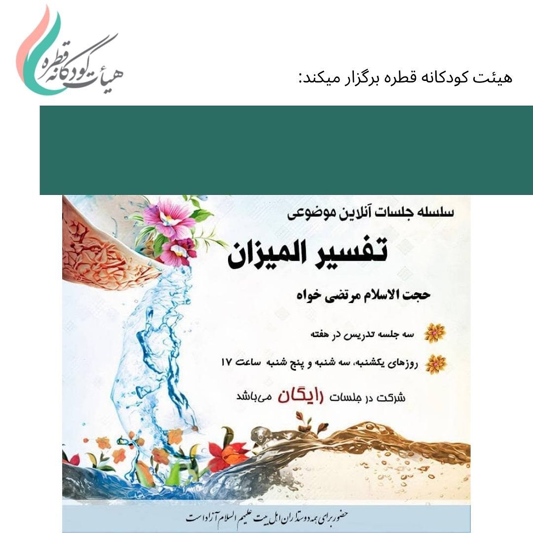 سلسله جلسات آنلاین موضوعی تفسیر المیزان📚 توسط حجت الاسلام مرتضی خواه 🗓 روزهای یکشنبه، سه شنبه، پنجشنبه ⏰ ساعت ۱۷ https://www.skyroom.online/ch/motazereyar/ghatre22 👈عضویت در گروه تفسیرالمیزان جهت اطلاع از جلسات و دریافت صوت پیام رسان ایتا https://eitaa.com/joinchat/26738763C6ad16e1c4b 🗂 آرشیو و دانلود صوت کلیه جلسات تفسیرالمیزان در پیام رسان سروش @talmizan 🖥 مشاهده و دانلود در وب https://what.splus.ir/talmizan #تفسیر_المیزان #جلسه_رایگان #کارگاه_مجازی #کلاس_تفسیر #تفسیر_المیزان_هیئت_قطره