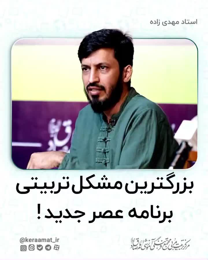 . 📍بزرگترین مشکل تربیتی برنامه عصر جدید! در تربیت ما لهو و لعب و سرگرمی داریم. اما لازم است این سرگرمی بستری برای رشد باشد. یعنی در کنار عبادات فردی و اجتماعی، سرگرمی هم باید وجود داشته باشد تا برای دو عرصه دیگر ما را آماده کند. مثل کاری که در عصر جدید میشود، ما هم در تربیت میخواهیم از این لهو ستفاده کنیم. مثل تشویق در تربیت. مثلاً برای تشویق بچهها به نماز، ابتدا به او شکلات میدهیم و بعد سر صف او را معرفی میکنیم تا دیده شود. دیده شدن تا اینجا بد نیست اما تا چه سنی و تا چه مقطعی لازم است از آن استفاده کنیم. چیزی که در عصر جدید خیلی من را اذیت میکند این است که در سری دوم از افراد موفق می پرسیدند تجربه خودتان را بگویید، میگفتند خیلی خوب بود وقتی همه با من عکس گرفتند یا همه به من سلام کردند. یعنی در مقابل بردن، چه به دست آوردی؟ دیده شدن! سوال این است که تا کجا میخواهیم پیش بریم؟ این کار باعث میشود مخاطبی هم که نیازی به این کار ندارد را عادت دهیم تا حتما باید دیده شوی تا کاری انجام دهی. 📌ما در کرامت، برایتان از اندیشه های مختلف تربیتی می گوییم، چراکه نگاه نقادانه ی شما ارزشمند است. 🔖استاد مهدی زاده #لهو #لعب #تجربه #عادت #عصر_جدید #استاد_مهدی_زاده #تشویق #تربیت #مخاطب #عکس #موفق