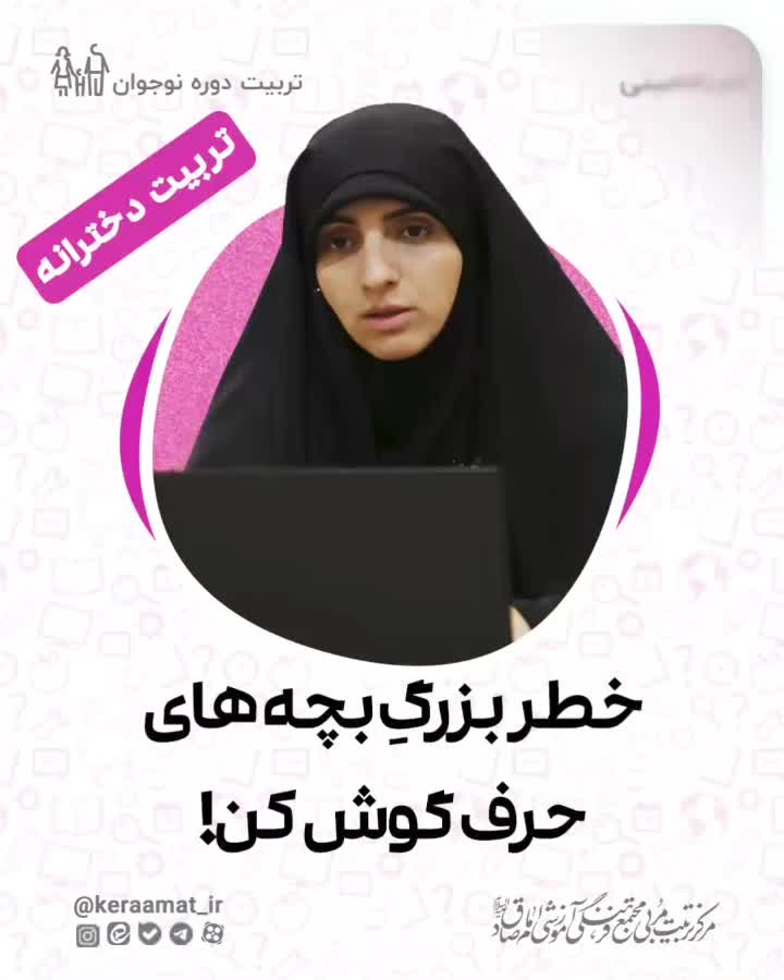 . ⭕*ثبت نام دوره تربیت دخترانه* لینک ثبت نام در بایو پیج قرار دارد 🔰 *خطر بزرگِ بچه های حرف گوش کن!* 🔻خانواده هایی که در احساس تعلق به فرزندانشان خیلی سخت گیری میکنند؛ یعنی خیلی امر و نهی دارند و فرزندانشان را مجبور میکنند که سنتهای حاکم بر خانواده را رعایت کنند، بچههایشان برای اینکه احساس خوشایند تعلق را داشته باشند، از فردیت خود دست میکشند و تبدیل به یک عضو مطیع برای خانواده میشوند. چنین خانوادهای، خیلی هم خوشحال است که فرزندانی مطیع دارد. ❌ اما اتفاق بد آنجاییست که دختر ما، وقتی در گروههای دوستی در مدرسه و دانشگاه قرار میگیرد، آنجا هم دوست دارد دوباره احساس شیرین تعلق را داشته باشد. به همین دلیل از تفکر نقادانهی خود دست میکشد و همچنان به عنوان عضوی مطیع اما این بار در گروههای دوستی شناخته میشود. ❓در این وضعیت ناگهان با پدیدهای مواجه می شویم که یک دختر خوب، از یک خانواده خوب، بعد از قرار گرفتن در گروه دوستی نوع پوشش و صحبت کردنش تغییر میکند!! چرا؟! 🔴 دلیل این است که او همواره به عنوان یک عضو مطیع شناخته شده و به دلیل اینکه میترسد از گروههای دوستی بیرون نشود، تفکرات خود را بروز نمیدهد! ☑️ به همین دلیل همانقدر که لازم است خانواده احساس تعلق به فرزند خود بدهد، لازم است احساس فردیت به فرزندش بدهد. یعنی خانواده هر عضو خود را به عنوان موجودی منحصر به فرد قبول کند و بپذیرد که هر یک از بچهها علایق و تواناییهای خاص خودش را دارد و از علایق و توانایی های خاص فرزندش حمایت کند. "خانم دکتر امینی" 🌐 اطلاعات بیشتر و ثبت نام در لینک موجود در بایو پیج ✅@keraamat_ir ⚠️ ما در کرامت، برایتان از اندیشه های مختلف تربیتی می گوییم، چراکه نگاه نقادانه ی شما ارزشمند است. ⚠️ #کرامت #تربیت #دخترانه #تربیت_دخترانه #دوره_آموزشی