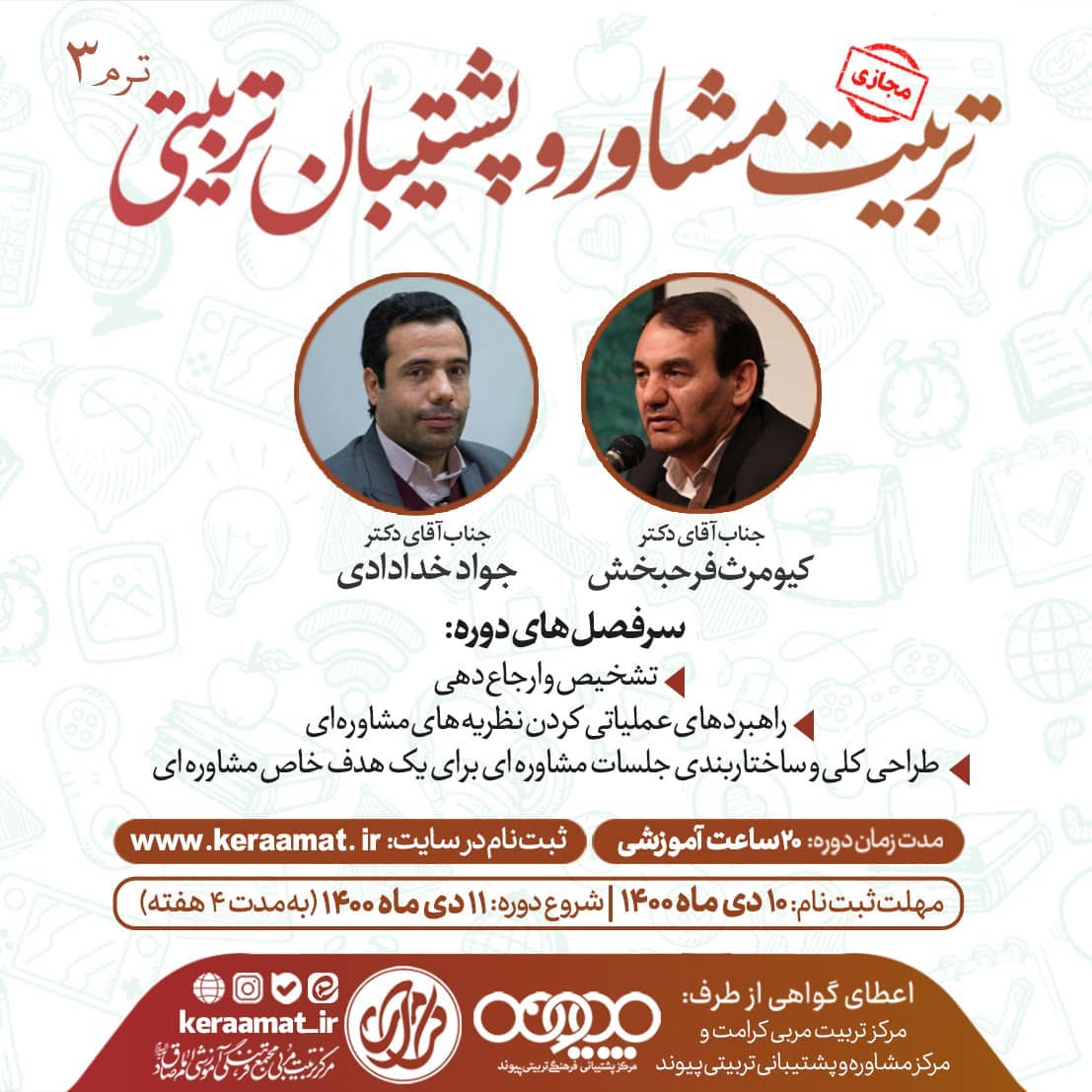 💡 دوره مجازی تربیت مشاور و پشتیبان تربیتی (ترم سوم) 🔸 ۲۰ ساعت آموزشی طی ۴ هفته 🔸 شروع دوره: ۱۱ دی 📌همراه با اعطای گواهی از سوی مرکز تربیت مربی کرامت و مرکز مشاوره و پشتیبان تربیتی پیوند ♦️ ارائه کد تخفیف به شرکت کنندگان دوره های گذشته کرامت، طلاب و دانشجویان، مادران دارای۳ فرزند و بیشتر 🔆 دریافت کد تخفیف در بله، ایتا و واتس آپ با نام کاربری @keraamat_majazi یا شماره 09021818022 🌐 اطلاعات بیشتر و ثبت نام در www.keraamat.ir ✅ @keraamat_ir . . . . . . . #مشاور #مشاوره #دوره_آموزشی #دوره_تربیتی #آموزش #آموزشی #مشاوره_خانواده #مشاور_خانواده #مشاوره_رایگان #مشاوره_آنلاین