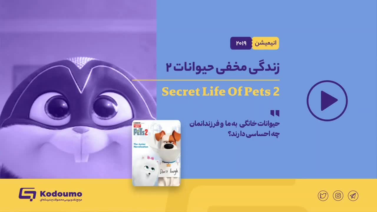 📍این داستان، مواجههی حیوانات خانگی با فرزندان صاحبانشون رو روایت میکنه و موازی با داستان اصلی، به غم حیواناتی که برای نمایشها و سیرکها استفاده میشن اشاره میکنه. 📍هرکدام از قهرمانان، داستان خودشون رو دارن که در انتهای انیمیشن به هم گره میخورن. همهی اونها میتونن الگوی مناسبی برای فرزندتون باشن. 📍دوستداشتنیبودن شخصیتهای داستان ممکنه باعث شه تا فرزندتون حتی ریزترین رفتارها رو الگوبرداری کنه 🔗 کدومو؛ همپای خانوادهها @Kodoumo #کدومو #تربیت #انیمیشن #خانواده #زندگی_مخفی_حیوانات_خانگی