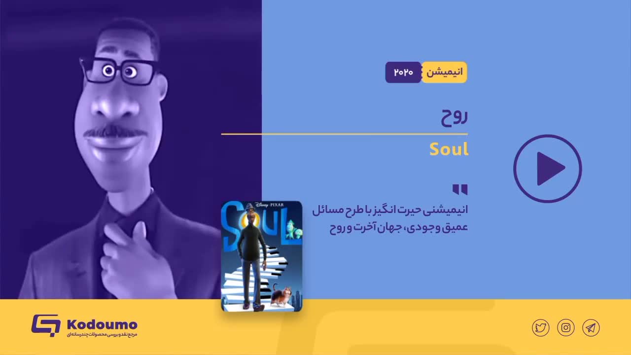 این اثر در جشنوارههای بین المللی جایزهی «بهترین انیمیشن سال» رو گرفته. داستان این انیمیشن دربارهی زندگی جو گاردنر، معلم موسیقیه که آرزو داره در گروه موسیقی جاز، پیانو بنوازه. این انیمیشن در دنیایی فانتزی دربارهی جهان آخرت، روح، هدف و معنای زندگی صحبت میکنه و میتونه بهانهی خوبی برای آغاز گفتگو با فرزندانتون دربارهی مسائل مهمی مثل جهان آخرت، مرگ، چگونه زیستن در دنیا، حل اختلاف با والدین و… باشه! ارزیابی کامل این انیمیشن در سایت کدومو هست و شما هم حتما نظرتون رو همینجا برامون بنویسین! کدومو؛ همپای خانوادهها @Kodoumo #انیمیشن_روح #soul #روح #کدومو #کودکی #روانشناسی #تربیت_کودک