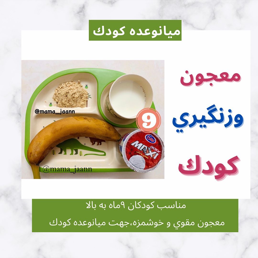 سلام بهتون پيشنهاد ميكنم حتما اين معجون رو درست كنيد كه عاليه🤗خيلي خوشمزه ست😋 لاا. یک وذخیره یادت نره لطفا😇🙏🏻 🌱اگر از اكسپلور مياي پيش ما بمون🙏🏻❤️ @mama_jaann @mama_jaann ✅اسموتی موز(+٩) موز یخ زده:١عدد كوچك🍌 بستنی:١قاشق غذاخوري🍦 شیر پاستوریزه یا شیر خشک:نصف استكان🥛 پودرسنجد:نصف قاشق مرباخوري پودر بادام و گردو:١قاشق مربا خوري عسل (۲سال به بالا)یا شکر به دلخواه🍯 پوست موز را بکنید وبزارید داخل فریزر تا یخ بزنه بعد همه مواد رو داخل مخلوط کن بریزید و میکس کنید تا همه مواد باهم مخلوط بشه.👍🏻😇 ✅نكته: ١-شیر نباید زیاد باشه اسموتی باید غلظتی به اندازه ماست داشته باشه. ٢-اگه شیرینی بستنی واستون کم بود میتونید مقداری عسل(۲سال به بالا)یا شکر اضافه کنید. ٣-ی میان وعده عالی ومقوی واسه کوچولوها که میتونید انواع مغزیجات روبهش اضافه کنید.😍 ٤-اگه دوست داشتيد ميتونيد خرما هم بريزيد. ۵-اگر کوچولوتون به پروتئین گاوی حساسیت داره میتونید از شیرخشک مخصوصیا شیربادام بریزید. ۶-بستنی بهتره زیر یکسال ندید اما یک قاشق داخل این معجون مشکلی نداره🤗 نوش جان❤️🌹 #دسرخوشمزه #موز #اسموتی_میوه #اسموتی_موز #میان_وعده #غذای_خانگی #بستنی_خانگی #کودک_باهوش #کودک_سالم#غذاي_كودك_ماماجان#غذای_کودک #غذای_بچه #تغذیه_کودک #غذای_کمکی_کودک @mama_jaann