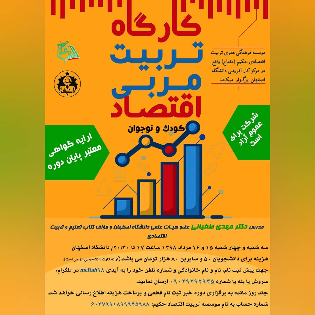 مفتاح/ تربیت مالی و اقتصادی کودک، نوجوان موسسه فرهنگی تربیت اقتصاد حکیم "دانشگاه اصفهان" اینجا فرزندانتان رفتار صحیح مالی و اقتصادی را می آموزند "ناشر تخصصی" تماس: 09029292935