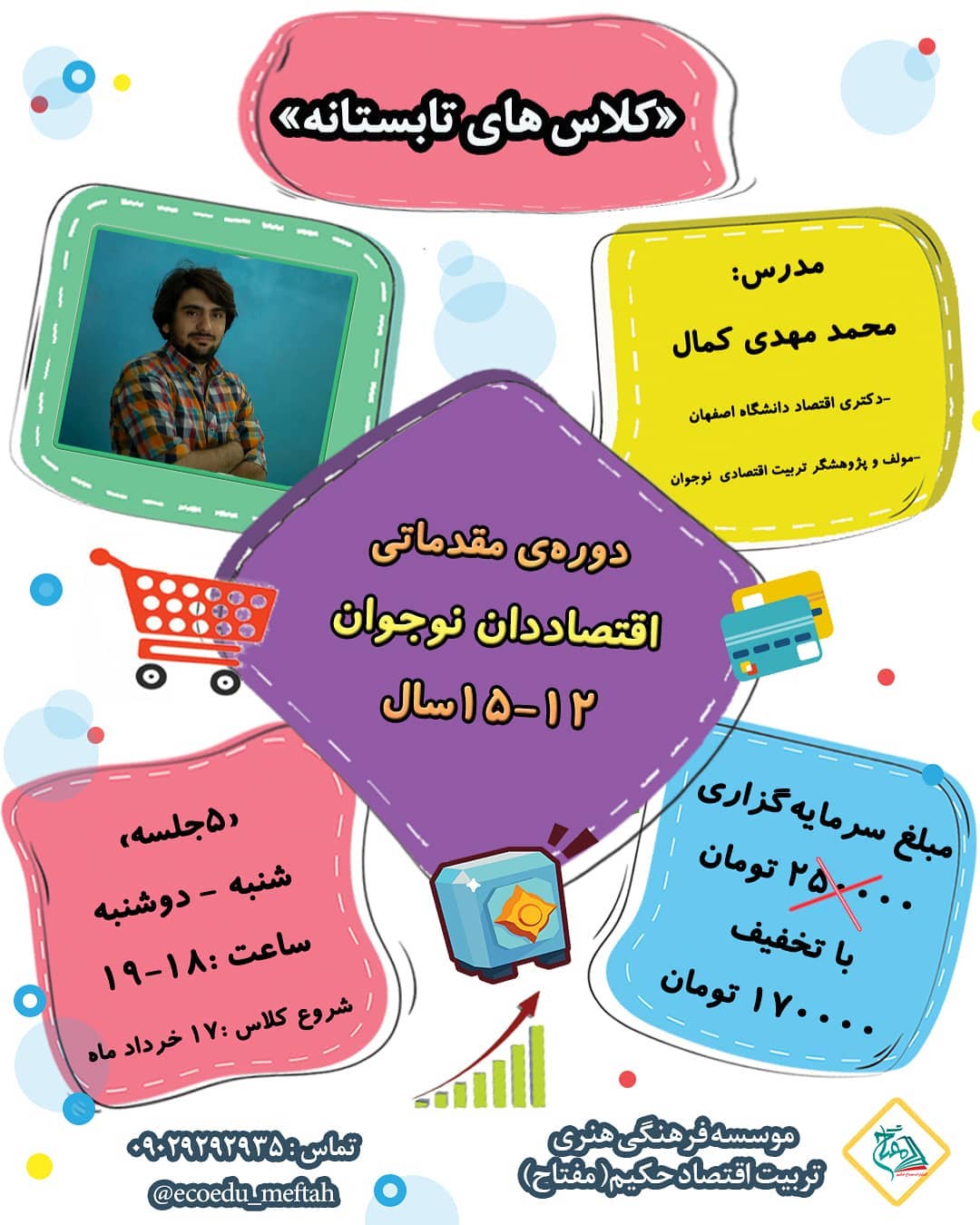 #کلاس_مجازی سن ۱۲ تا ۱۵ سال بسیار سن خوبیه که نوجوون مفاهیم اقتصادی رو یاد بگیره، هزینه هاشو اولیت بندی کنه، درست خرید کنه و درنهایت هم یه شغل خوب برای خودش دست و پا کنه😊 . کلاس اقتصاددان نوجوان: ۵ جلسه یک ساعتی مبلغ سرمایه گذاری: ۲۵۰ هزار تومن با تخفیف جشنواره تابستانه فقط و فقط 👈👈 ۱۷۰ هزار تومان . 👈سرفصل ها: ۱-تعریف اقتصاد، کمیابی ،هزینه فرصت ۲-نیاز و خواسته ۳-هدف گذاری، بودجه بندی ۴-کسب درامد ۵-خرید کردن . سرفاصل هایی تا این حد کاربردی😍 تازه اینا فقط مال مقدماتیه! ثبت نام در دایرکت😊کلاس نوجوان: ۵ جلسه یک ساعتی مبلغ سرمایه گذاری: با تخفیف ۱۷۰ هزار تومان . 👈سرفصل ها: ۱-تعریف اقتصاد، کمیابی ،هزینه فرصت ۲-نیاز و خواسته ۳-هدف گذاری، بودجه بندی ۴-کسب درامد ۵-خرید کردن . سرفصل هایی تا این حد کاربردی😍 تازه اینا فقط مال مقدماتیه! دیگه ببینید پیشرفته چه شودددد😎 ثبت نام در دایرکت😊 لطفا به بقیه هم معرفی کنید🖐 . مفتاح؛ موسسه فرهنگی تربیت اقتصاد حکیم @ecoedu_meftah #کلاس_مجازی #کلاس#تربیت_اقتصادی#اقتصاد #اقتصاد_را_از_کودکی_فرهنگ_سازی_کنیم #سواد_مالی#سواد_اقتصادی