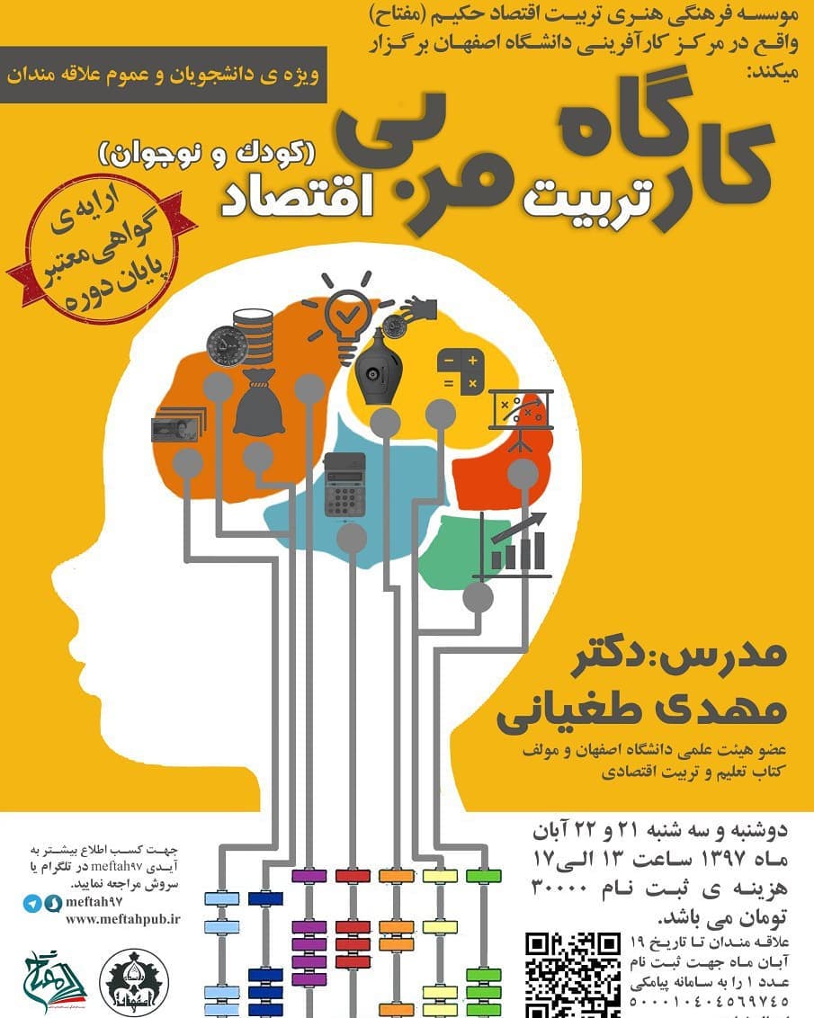 مفتاح/ تربیت مالی و اقتصادی کودک، نوجوان موسسه فرهنگی تربیت اقتصاد حکیم "دانشگاه اصفهان" اینجا فرزندانتان رفتار صحیح مالی و اقتصادی را می آموزند "ناشر تخصصی" تماس: 09029292935