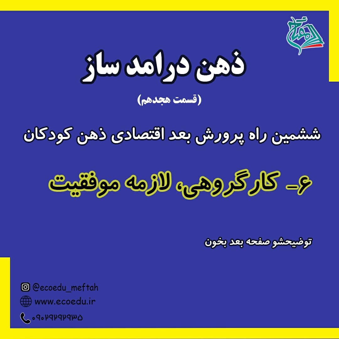 😊 و ششمین راه... . کار گروهی فواید بسیار زیادی داره.فقط یکی از فوایدش پیدا کردن توانمندی هاست! . فایده های دیگه اش رو شما کامنت کنید🌷 . ◀مفتاح؛موسسه فرهنگی هنری تربیت اقتصاد حکیم @ecoedu_meftah @ecoedu_mefath @ecoedu_meftah