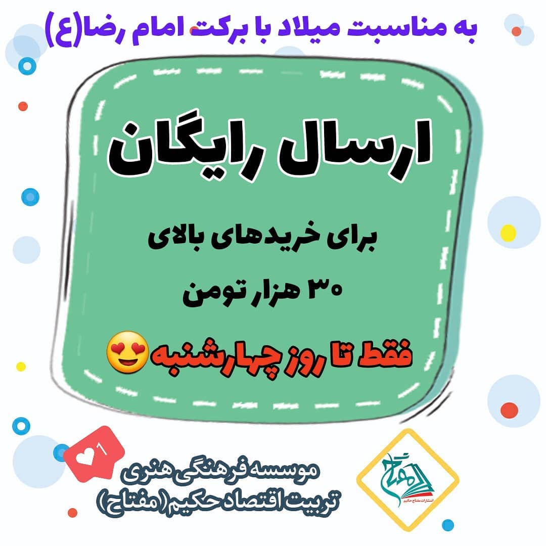 دیدیم حیفه میلاد آقا باشه و ما بهتون عیدی ندیم😍😍 . ارسال رایگان هم عیدی ما به شما😊 تربیت اقنصادی و مالی بچه ها رو جدی بگیرید🙂👇 . بسته های آموزشی ویژه ۶تا۹ سال: . 🔸اقتصاددان کوچک🔸 شامل ۷تا کتاب داستان، یک کتاب کار و یک راهنمای والدین 💶قیمت: ۱۲۹۰۰۰ تومان مفاهیمی که آموزش میدهد: نیاز و خواسته، انتخاب و تصمیم گیری، تولید، مبادله، خرید صحیح، بازار، کار و تلاش، پس انداز . 🔸اقتصادیار کوچک ۱🔸 شامل ۷تا کتاب داستان، یک کتاب کار و یک راهنمای والدین 💶قیمت: ۱۰۸۰۰۰ تومان مفاهیمی که آموزش میدهد: عدالت، قناعت، بخشش و صدقه، کارافرینی، صبوری برای سرمایه گذاری، خرید صحیح . ویژه ۹تا۱۲ سال: 🔸اقتصادیار کوچک ۲🔸 شامل ۸ کتاب داستان و یک کتاب کار 💶قیمت: ۱۳۳۰۰۰ تومان مفاهیم: کار و تلاش، عدالت، ریسک و امید، استقلال و خودکفایی، تحریم، مالیات، تولید داخلی، پس انداز، کارافرینی، کمیابی و انتخاب . با توجه به مفاهیم بسته های اقتصادیار کوچک ۱و ۲ دارای رویکرد اقتصاد مقاومتی هستند . . نکته: 👈تمامی کتاب داستانهای موجود در بسته ها به صورت تکی هم قابل سفارش است👉 شما میتونید برای دیدن محصولات با توضیحات بیشتر به سایت مراجعه کنید. داخل پیج هم تمام کتابها به تفکیک موجود هستند www.meftahpub.ir . ثبت سفارش با ارسال رایگان فقط در دایرکت❤ ممنون میشیم که ما رو به دیگران هم معرفی کنید تا افراد بیشتری با دانش تربیت اقتصادی آشنا بشن🌈 ایدی کانال ما در ایتا، تلگرام و اینستاگرام 👇 @ecoedu_meftah @ecoedu_meftah #ارسال_رایگان#پست#خرید_پستی#میلاد_امام_رضا(ع)#میلاد#عید# هدیه#عیدی# تربیت_اقتصادی#سواد_مالی#هوش_مالی#مفتاح