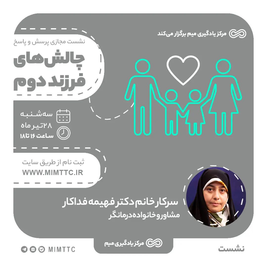 . احتمالا شما یا اطرافیانتون قبلا یا در زمان حال در موقعیت تصمیمگیری برای تولد فرزند دوم قرار گرفتین و سوالاتی از این جنس که؛ فرزند دومم رو کی بیارم خوبه؟ آیا با اومدن فرزند دوم، تضمینی برای حفظ کیفیت تربیت فرزند اولمون وجود داره؟ آیا می تونیم از پس مسئولیتهای دو فرزند بربیایم؟ فکرتون رو حسابی مشغول کرده.🤔 در نشست مجازی «چالشهای فرزند دوم» با حضور سرکارخانم دکتر فهیمه فداکار؛ مشاور و خانوادهدرمانگر، ضمن بررسی ابعاد متفاوت این چالش، پاسخگوی سوالات شما عزیزان حول این موضوع خواهیم بود.🤓 🗓 زمان: سهشنبه ۲۸ تیرماه ساعت ۱۶ الی ۱۸ ✅لینک ثبتنام: 🌐 https://mimttc.ir/?p=3852 . #فرزند #فرزند_آوری #فرزند_پروری #مشاور #مشاور_خانواده #تربیت_فرزند #تربیتی #پرسش_و_پاسخ